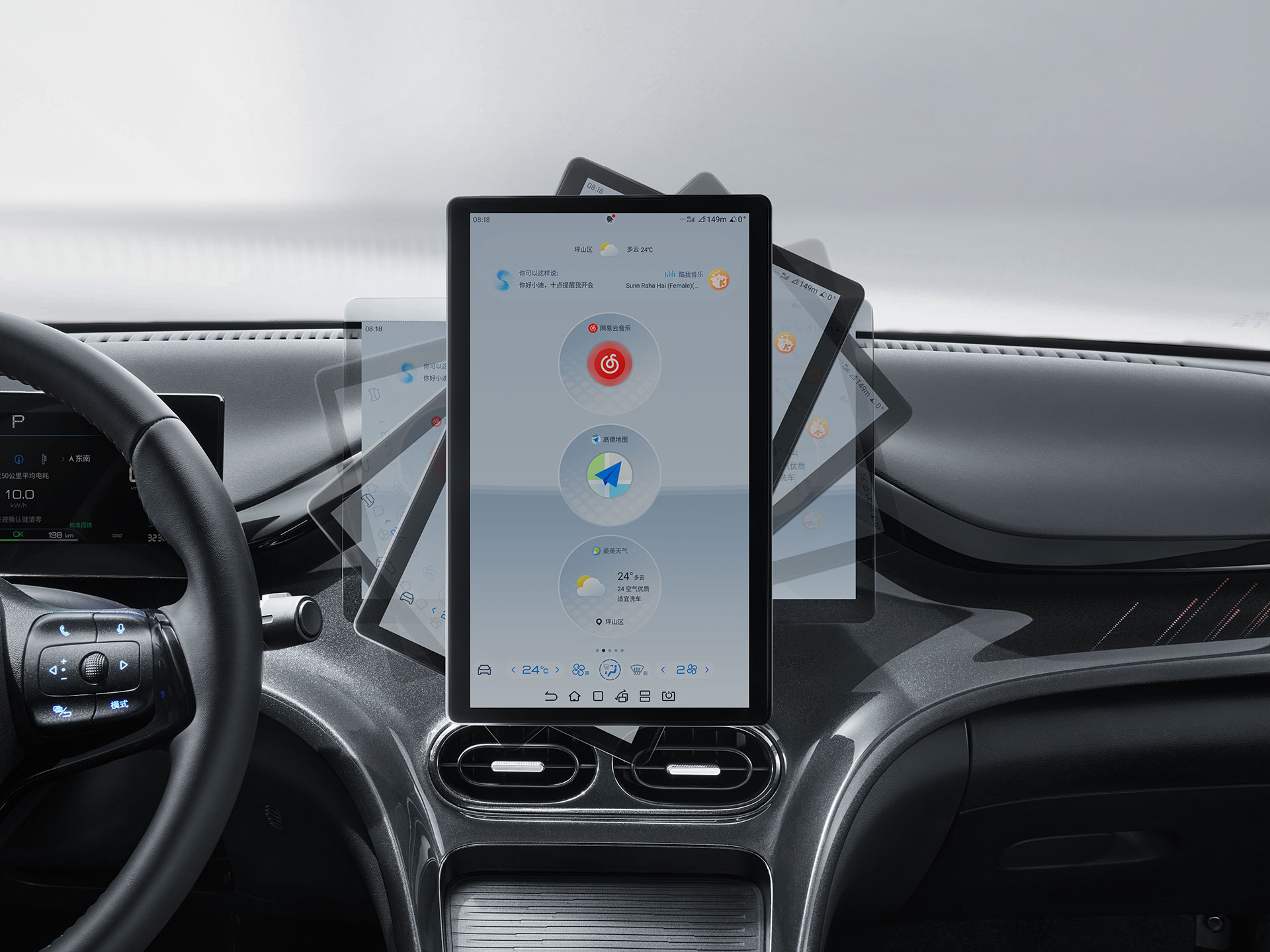 The large dominant display screen serves as the centre of a connected universe, integrating intelligent voice and connected car functions to allow the user to drive without distraction while also adding intelligent entertainment to the experience.